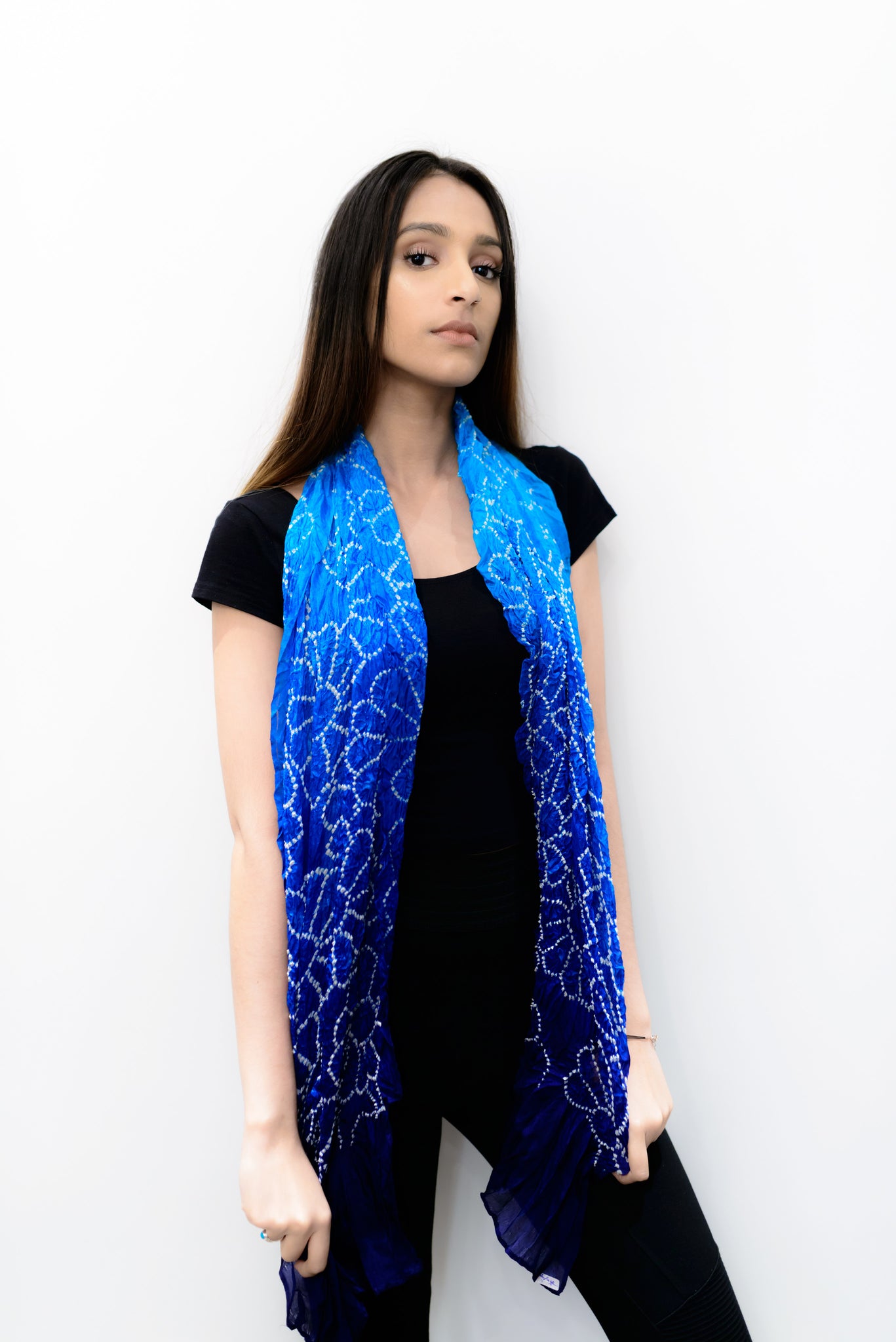 Mulberry silk blue two toned bandhani stole.