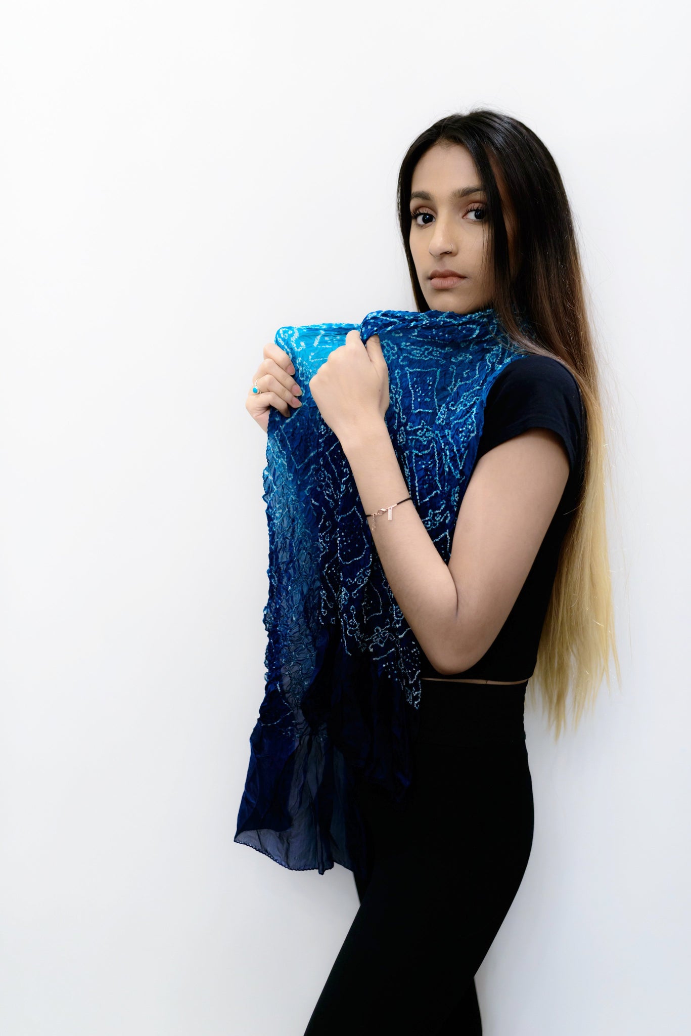 Mulberry silk navy blue bandhani stole.