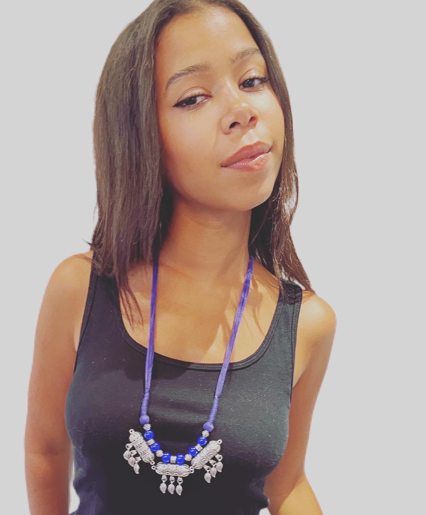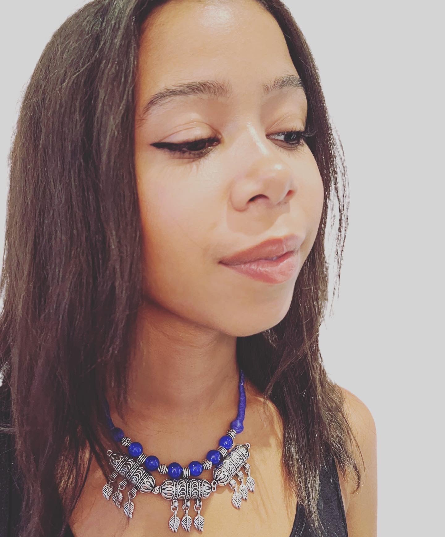 Boho necklace with adjustable length. Made from violet color threads, beads and german silver. Read more
