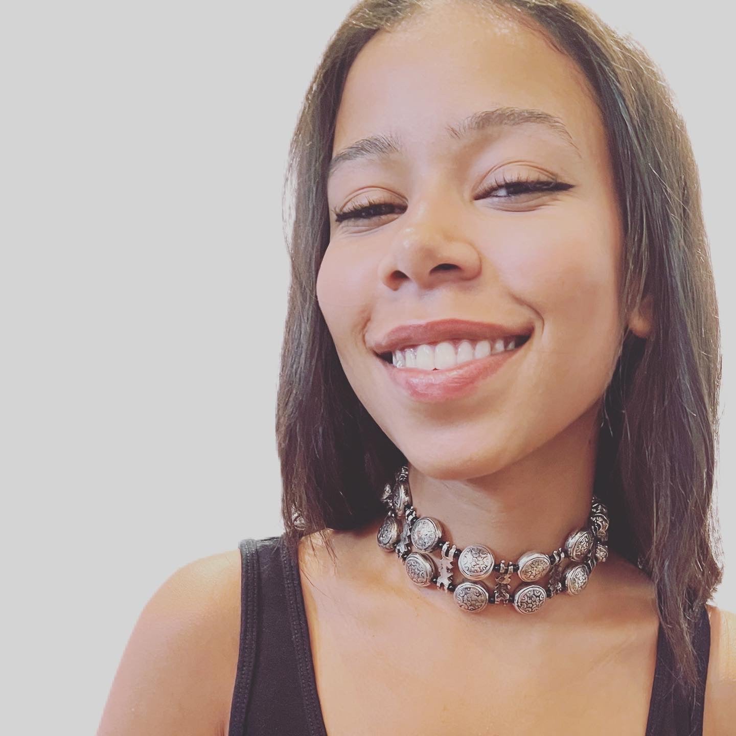 To embody your free spirit. Adjustable length. The choker is made of german silver and black thread. Read more