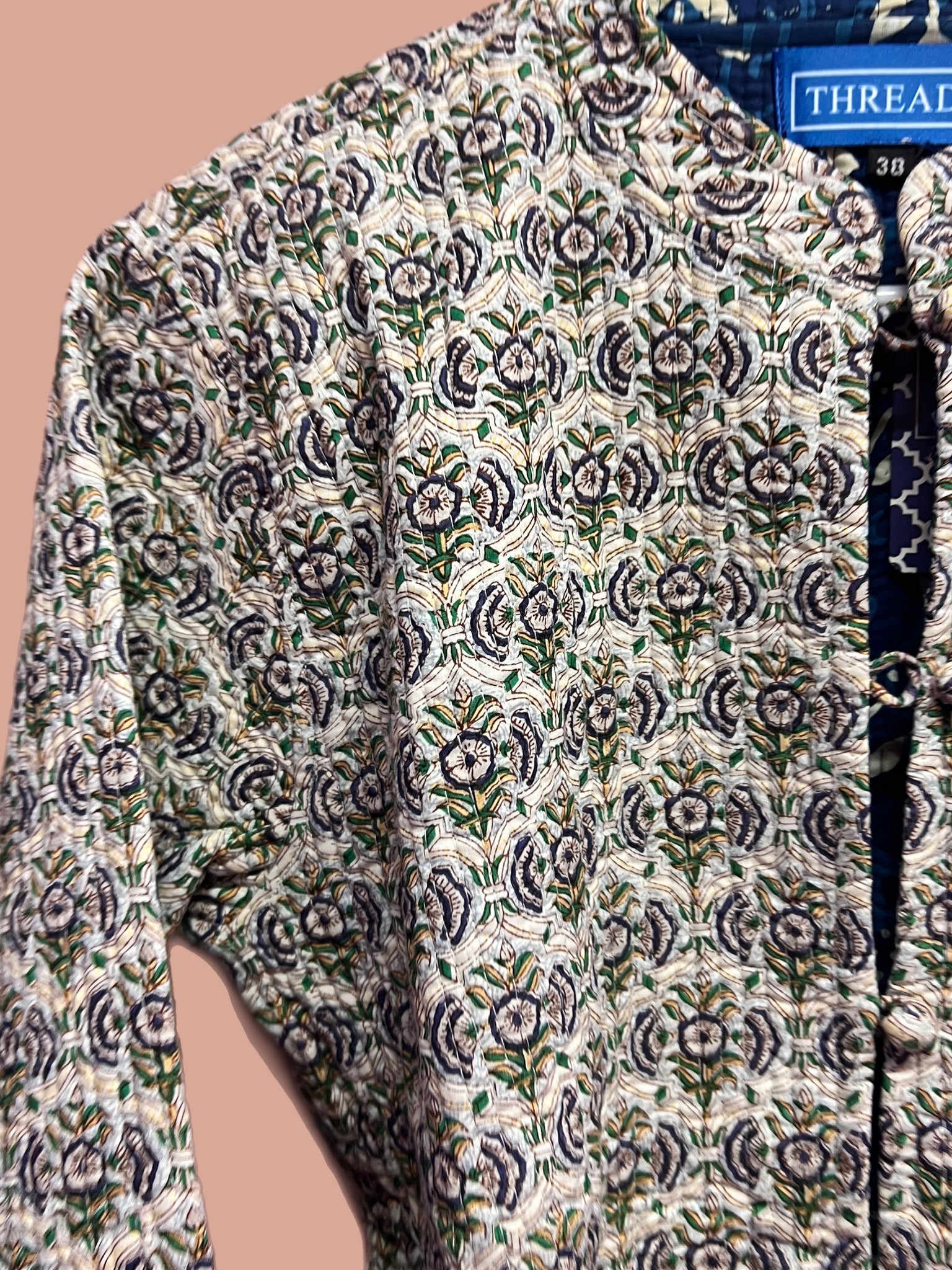 Quilted pure cotton short jacket with block print and reversible. Small size.
