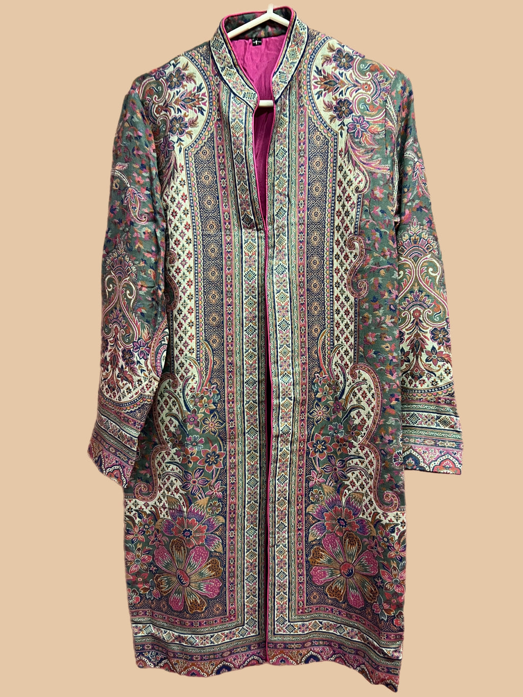 Pure wool jackets with intricate aari work done and brought to you from the beautiful valleys of Kashmir. A place not just popular for history, nature, cuisine, teas, trekking, lounging houseboats, spiritual or religious healing but also popular for its native craftsmanship.