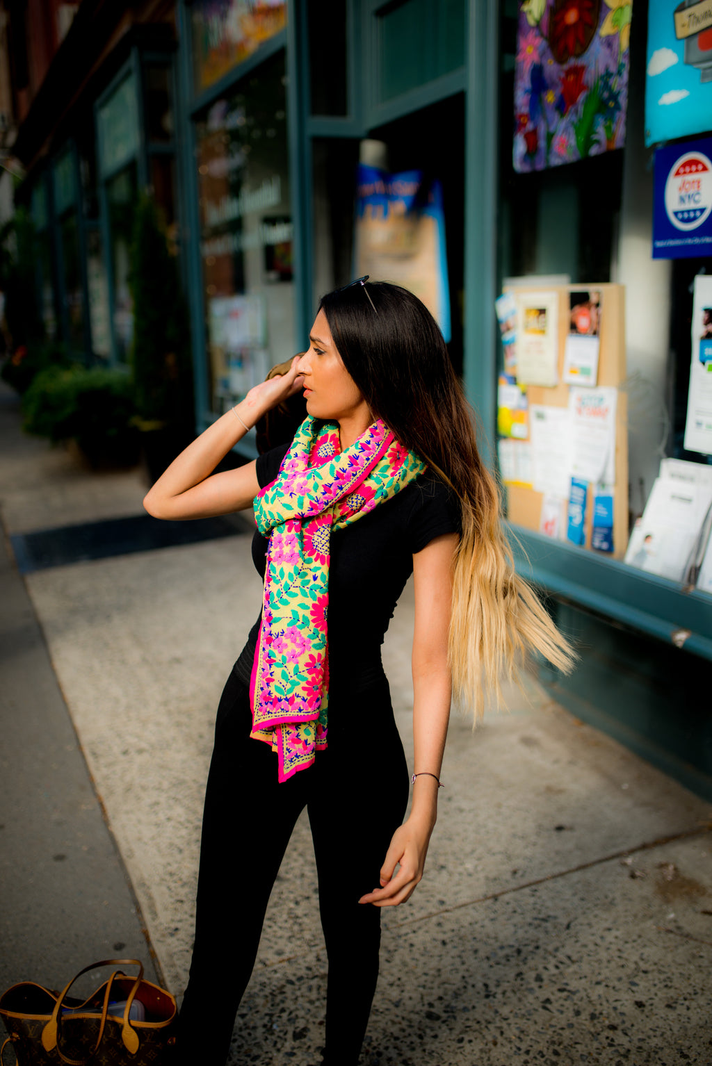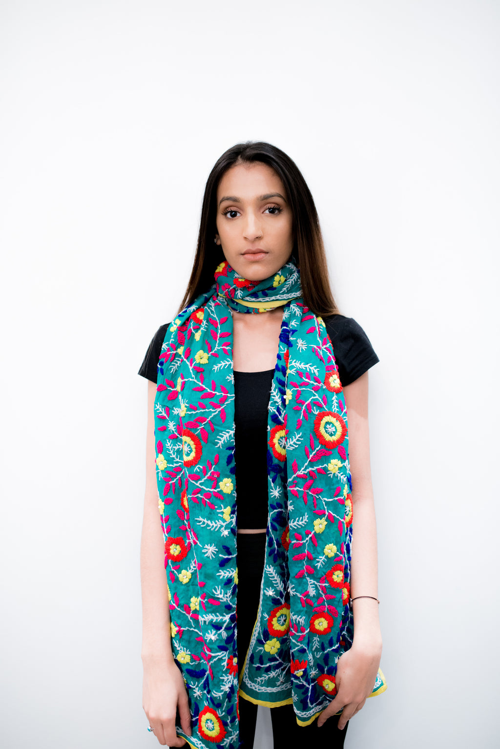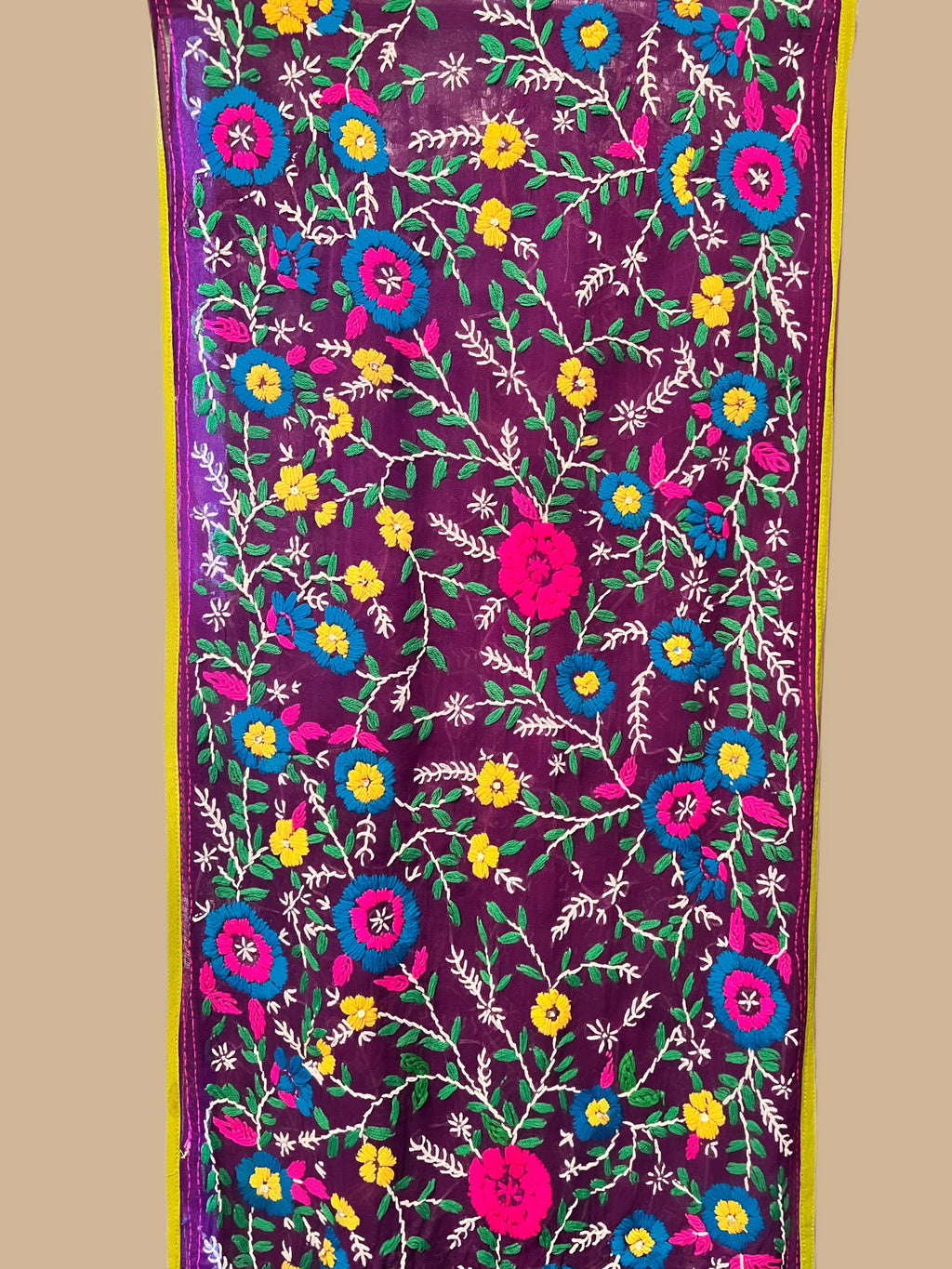 Georgette stoles with silk phulkari work, also known as flower embroidery work, a traditional embroidery from Punjab.