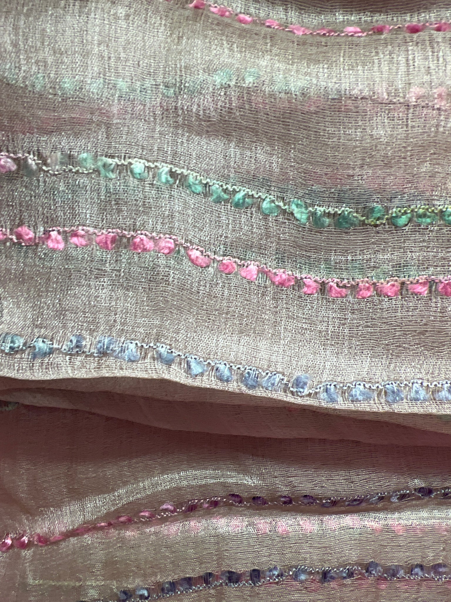 Rich in texture and deep in gold color naturally makes this a sophisticated addition to any outfit at anytime of the day. With thread work.